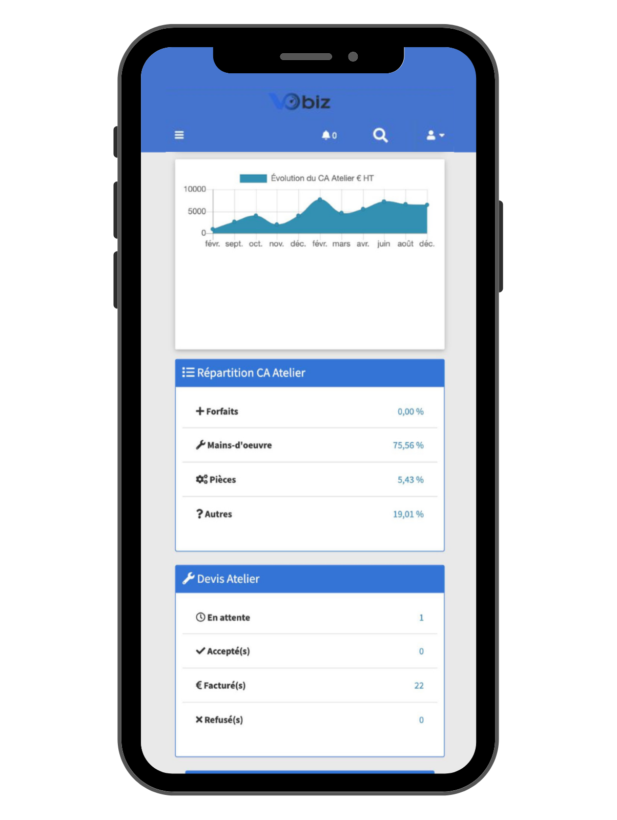 Définissez vos prestations, puis créez vos devis et factures en quelque cliques, gestions des ordres de réparation technique et commerciale, gestion du parc ...